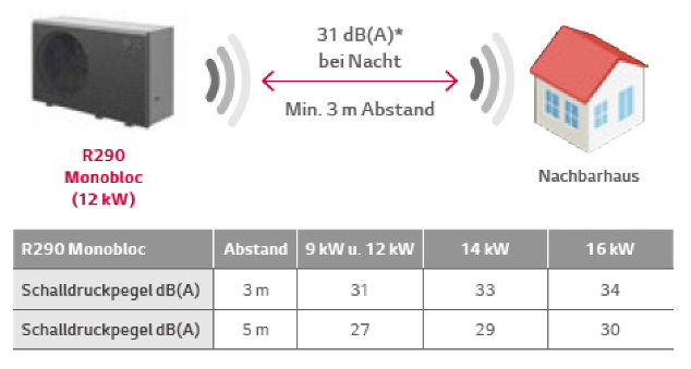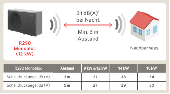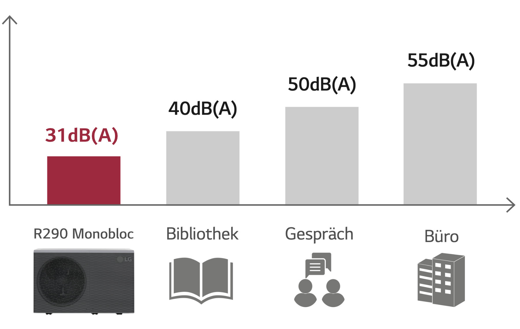 Durch die niedrigen Schallwerte der neuen LG R290 Monobloc besteht mehr Flexibilität bei der Wahl des Aufstellorts und die strengen Lärmschutzvorschriften können einfacher eingehalten werden.