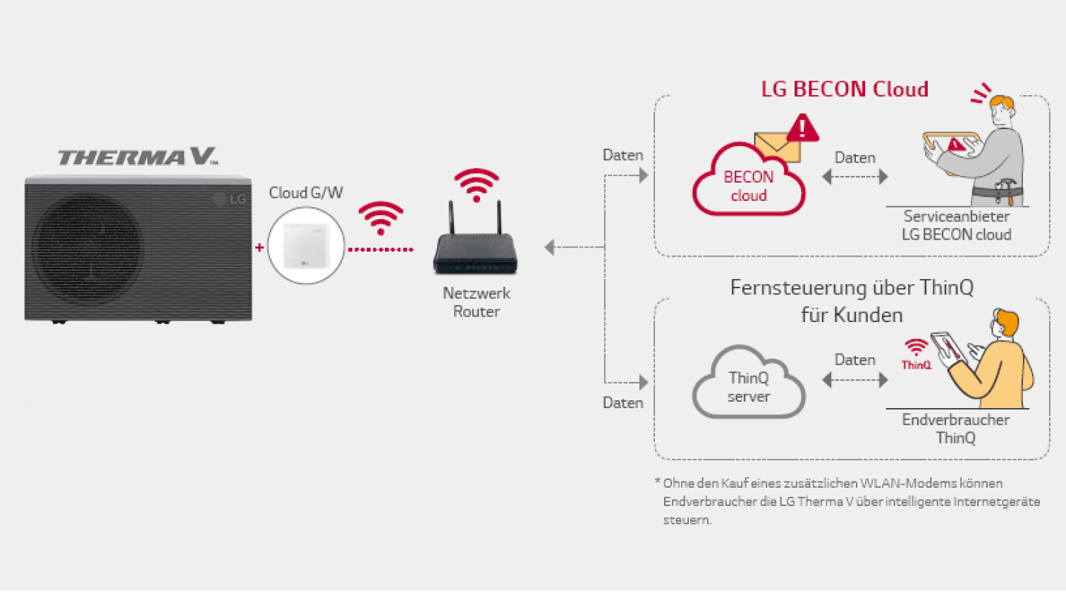 PWFMDD200 (LG-WLAN-Modem) PWYREW000 (10-m-Verlängerung zum Anschlusskabel zwischen THERMA V und LG-WLAN-Modem) je nach Montagesituation ggf. erforderlich.