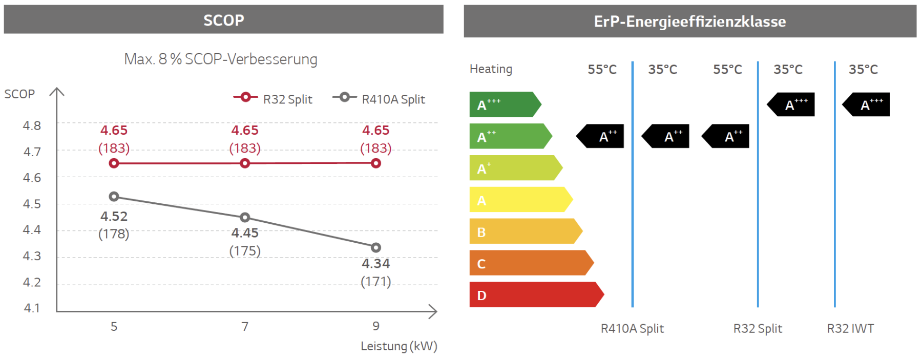 Die LG THERMA V R32 Mini-Split IWT hat separate, durch Kältemittelleitungen verbundene Innen- und Außengeräte. Hydronische Komponenten wie Plattenwärmetauscher, Ausdehnungsgefäß und Wasserpumpe sind im Innengerät untergebracht, weswegen die Einheit auch Außentemperaturen unter dem Gefrierpunkt aushält.